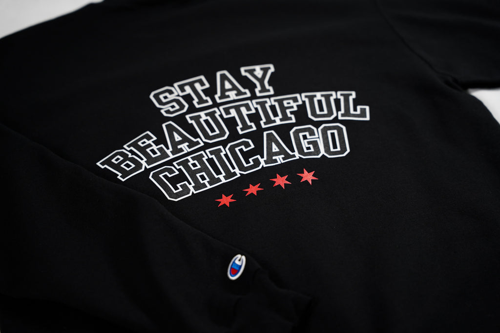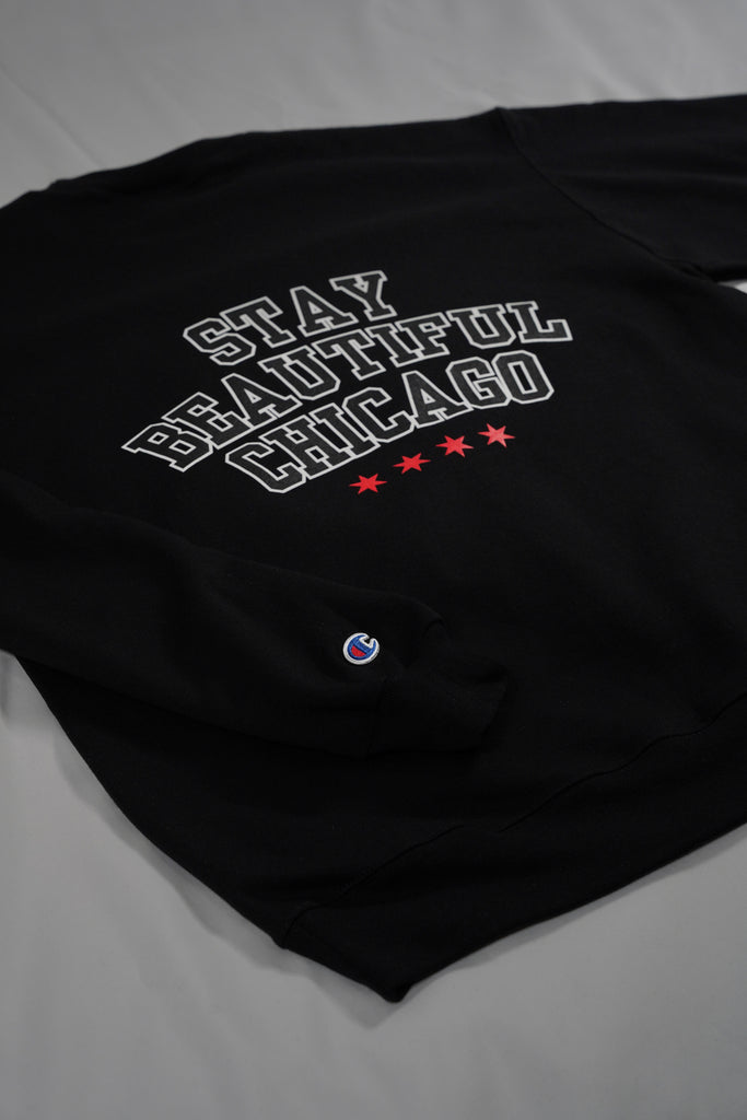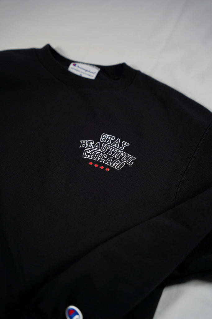 Stay Beautiful Chicago Varsity LOGO Champion Crewneck; Chicago Stars.